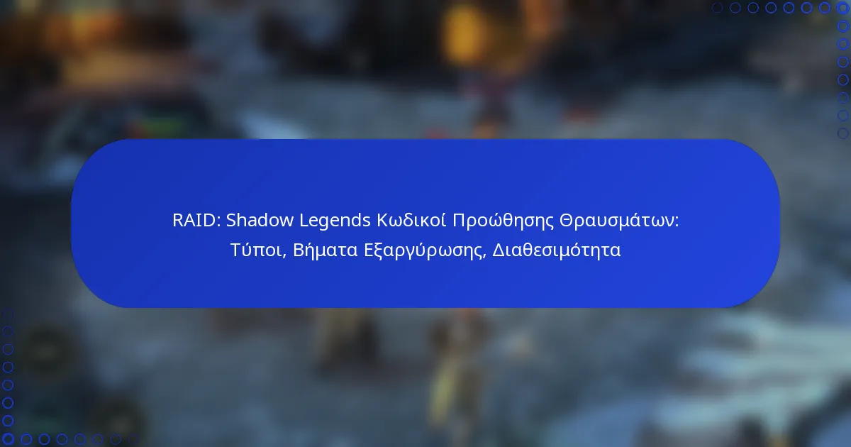 Οι τρέχοντες κωδικοί προώθησης θραυσμάτων του RAID: Shadow Legends μπορούν να βρεθούν μέσω διαφόρων επίσημων και κοινοτικών πηγών. Αυτοί οι κωδικοί συχνά παρέχουν στους παίκτες πολύτιμους πόρους εντός του παιχνιδιού, αλλά μπορεί να έχουν ημερομηνίες λήξης, οπότε είναι σημαντικό να ελέγχετε τακτικά.